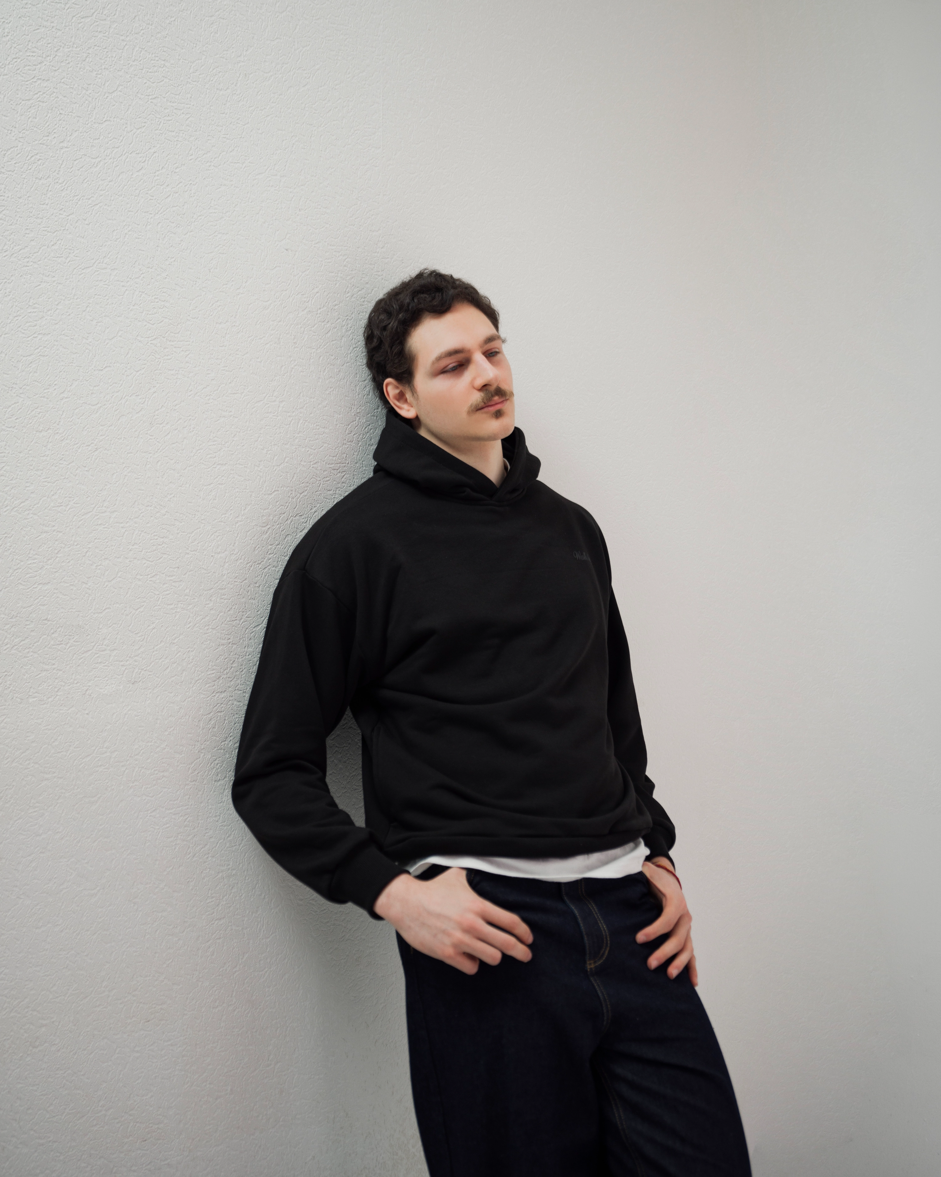 Classic pullover hoodie in black. Soft brushed-back fleece, kangaroo pocket, and ribbed cuffs. Clean minimal design.